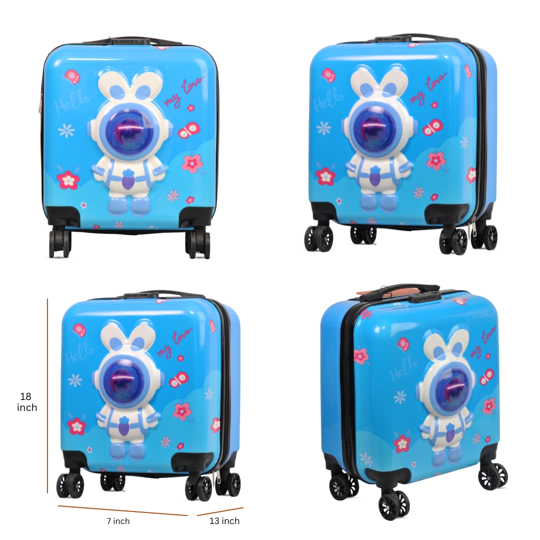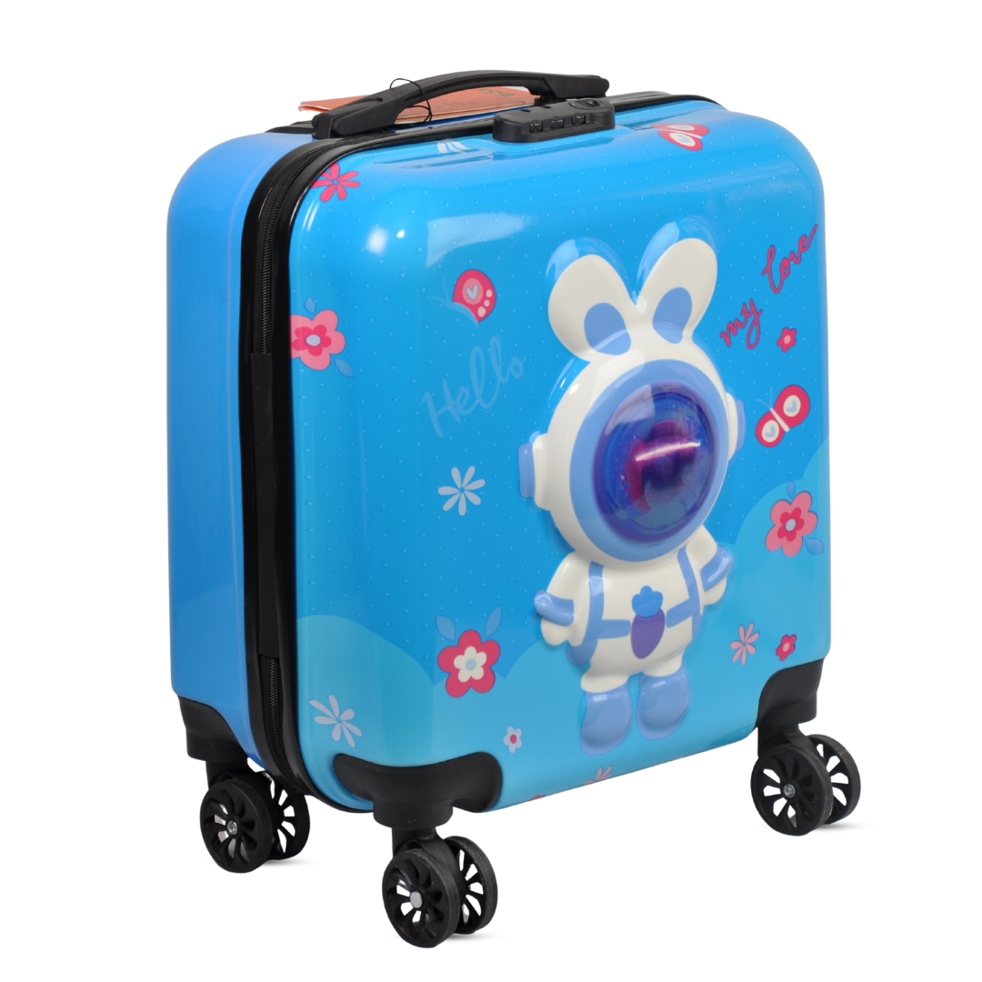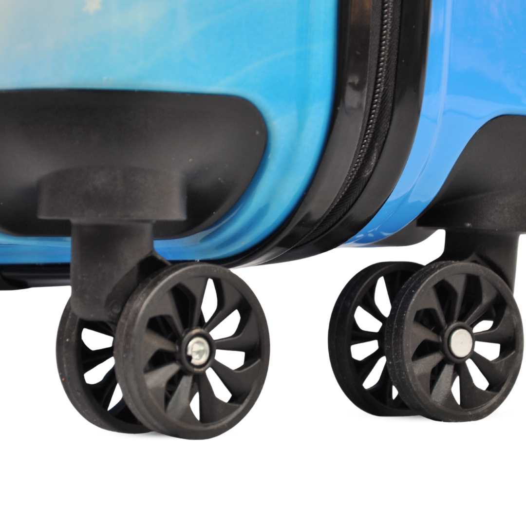 Crafted from durable ABS hard-shell material, this suitcase is both scratch-resistant and lightweight. With a compact cabin-size design (14 inches), it meets most airline hand luggage requirements. The four 360° spinner wheels allow smooth, multi-directional movement, making it easy for kids to roll their own suitcase. The aluminum telescopic handle adjusts to different heights for comfort.
