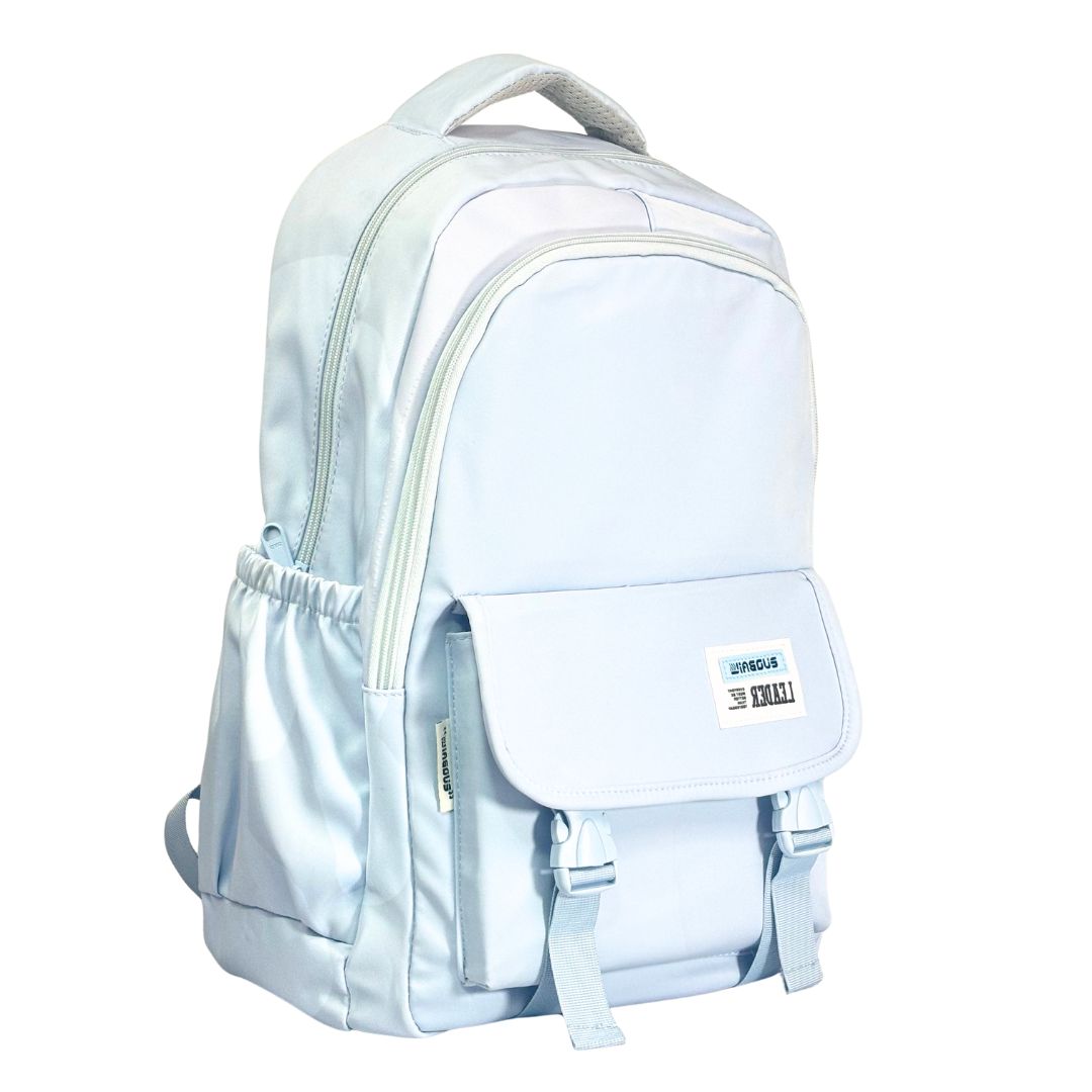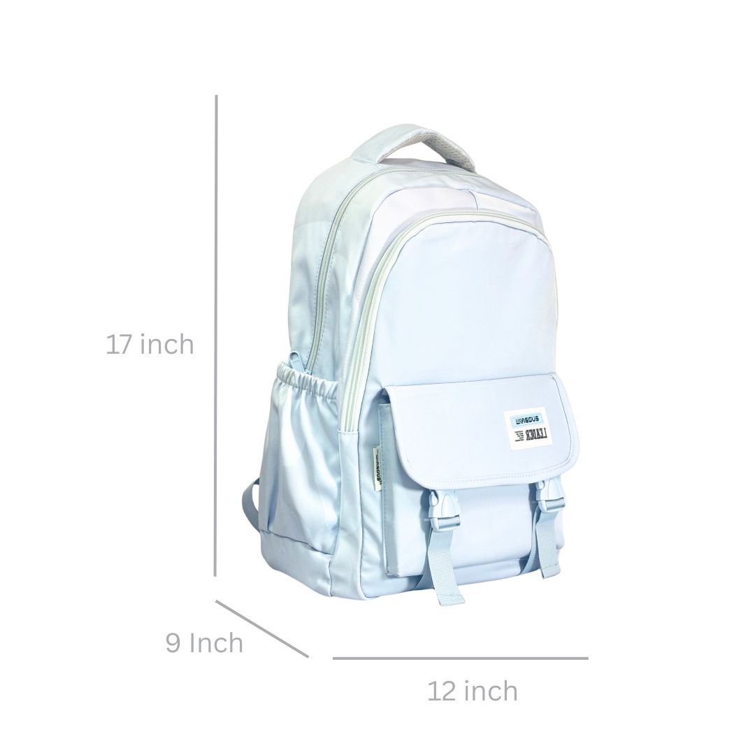 Large main compartment for books/laptop (up to 15.6”)Front utility pocket with zip and stitched detailingA soft-tone sky blue unisex backpack designed for students and minimal style lovers. Features a teddy patch and dream slogan, lightweight yet durable.Introducing the Pailodge Blue Bliss Backpackwhere function meets minimalist fashion. This imported unisex school bag is the perfect everyday companion for students, teens, or young professionals who appreciate subtle design with trendy accents.Made from premium quality water-resistant oxford fabric, this backpack is both practical and eye-catching. The calm sky blue tone is easy on the eyes and versatile enough for school, college, coaching centers, or travel. Its standout feature – a stitched teddy bear badge with a motivational “DREAM” tag – adds a personal, feel-good touch to your daily routine. The bag comes with a spacious main compartment that easily fits textbooks, notebooks, and laptops up to 15.6 inches. A front zipper pocket offers quick access to your stationery, wallet, or phone, while two side pockets keep bottles or small umbrellas within reach.Comfort hasn’t been compromised – the adjustable padded shoulder straps and cushioned back panel ensure effortless carrying all day. The zippers are smooth and durable with easy-grip pullers for fast access, even for kids or in a hurry.Whether you’re heading to school or just need a stylish light bag for everyday use, the Pailodge Blue Bliss Backpack will not disappoint. It strikes the perfect balance between playful and practical, making it an excellent gift option as well.Imported directly from China under the quality-committed Pailodge brand, this bag guarantees great value and durability.