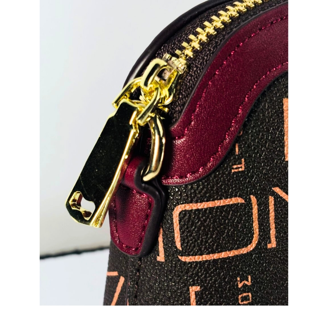 Elevate your accessory game with the stunning FIO Monogram Bee Crossbody Bag in a rich maroon and brown palette. This bag perfectly captures the essence of luxury-inspired design, making it a head-turning piece that is both practical and fashionable. The aesthetic, often summarized as “1.5 – 2 Line er Sundor” for its beautiful, neat design, makes it an ideal choice for the modern woman.