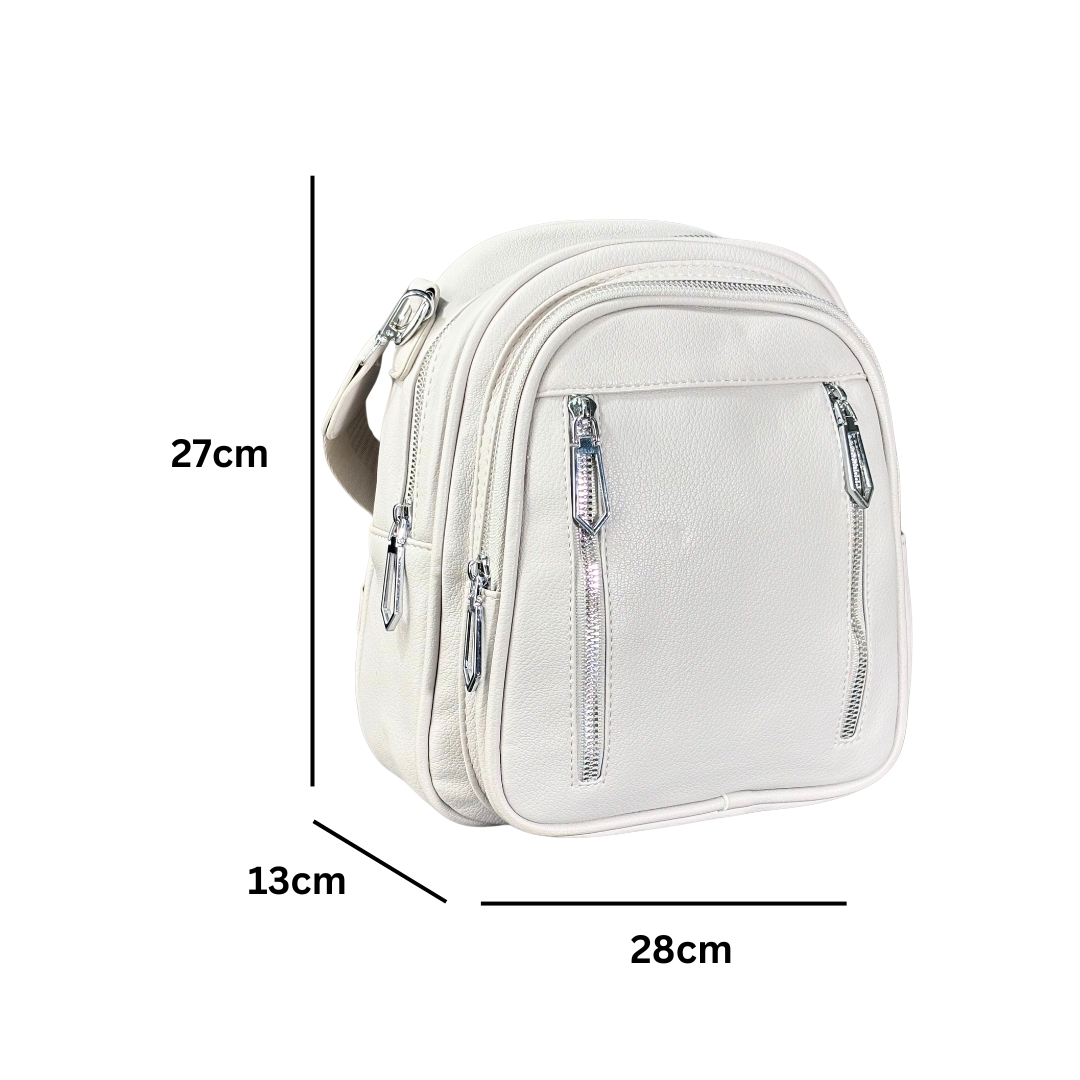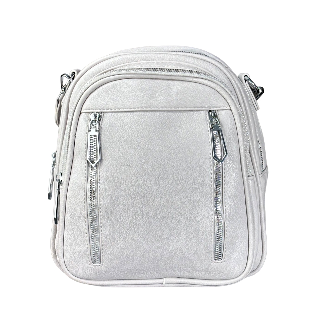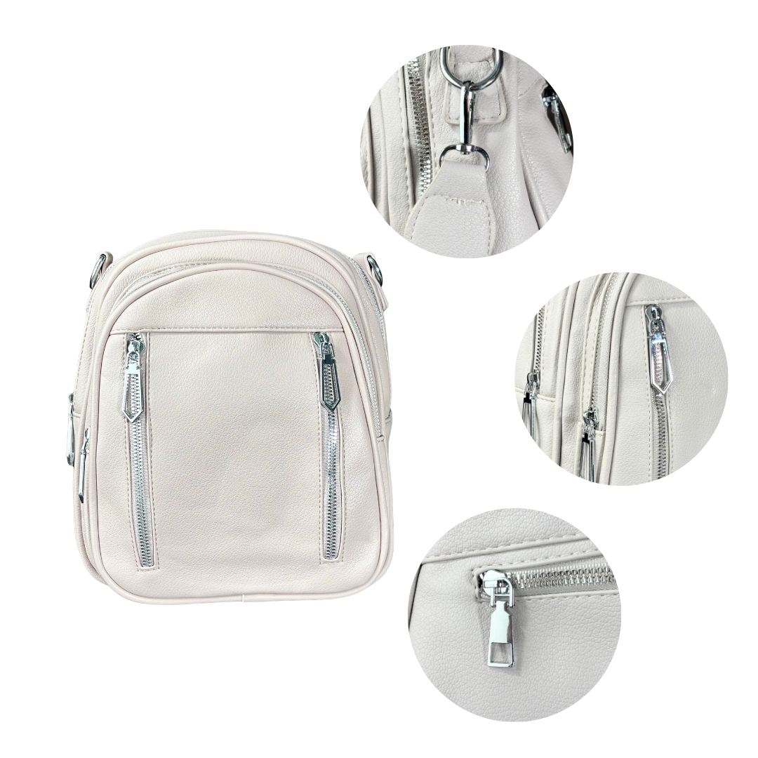 The Versa Luxury Mini modern Backpack from the Pailodge collection. This stylish bag is expertly imported from China representing our commitment to delivering trendy high-quality accessories. Its compact size 22cm by 18cm by 10cm is perfect for the minimalist modern woman who needs freedom of movement without sacrificing essential storage. The design features a durable premium faux leather exterior that is both soft to the touch and resistant to daily wear. Multiple silver-tone zipper pockets adorn the front and sides providing easy access and secure storage for your phone keys and small wallet. The main compartment has an organized interior section to keep your items neatly separated. We understand the importance of choice in fashion which is why this popular style is available in six stunning color variants. You can choose from Light Beige for a soft neutral look Light Grey for sleek city style Classic Black for timeless elegance Deep Red for a bold statement Navy Blue for a subtle pop of color and Warm Brown for a classic earthy tone. The adjustable padded shoulder straps ensure a comfortable custom fit allowing you to wear it all day long. This small backpack is perfect for casual outings shopping trips or as a chic alternative to a handbag. Pailodge ensures that every piece is crafted with attention to detail giving you a beautiful and functional imported accessory that you will love.